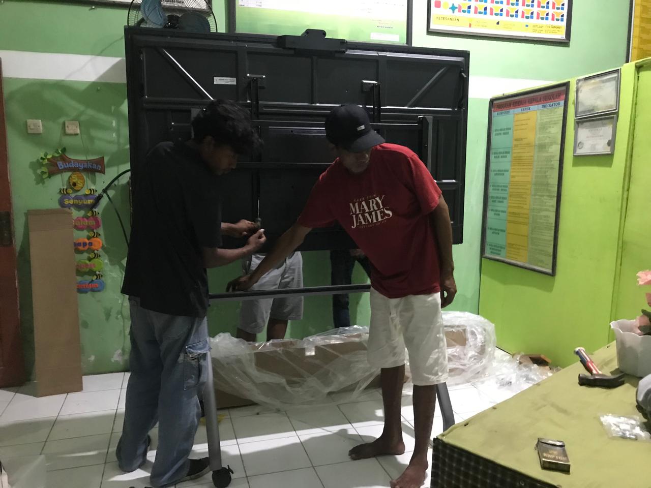 Petugas Pemasangan Smart TV Di SDN 77 NI'u Kota Bima
