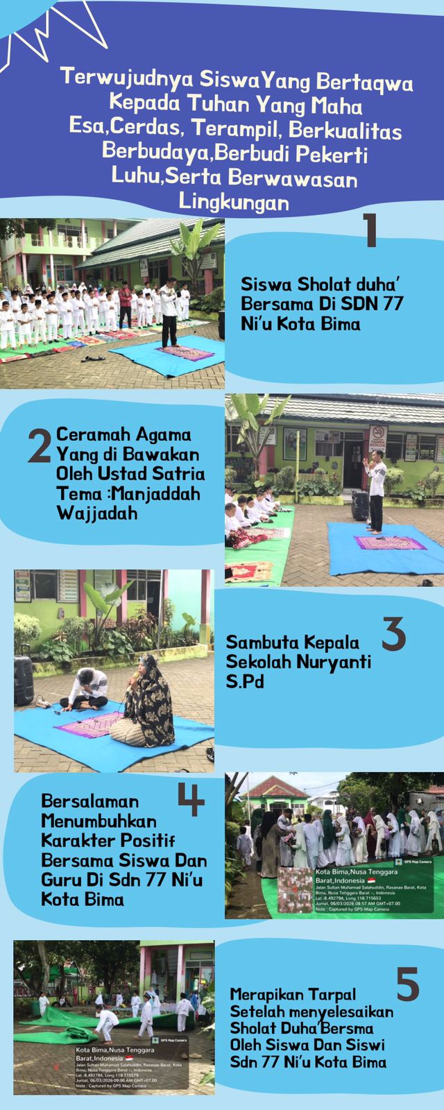 SHOLAT DUHA BERSAMA BERSAMA SISWA SISWI DAN GURU SDN 77 NI'U KOTA BIMA